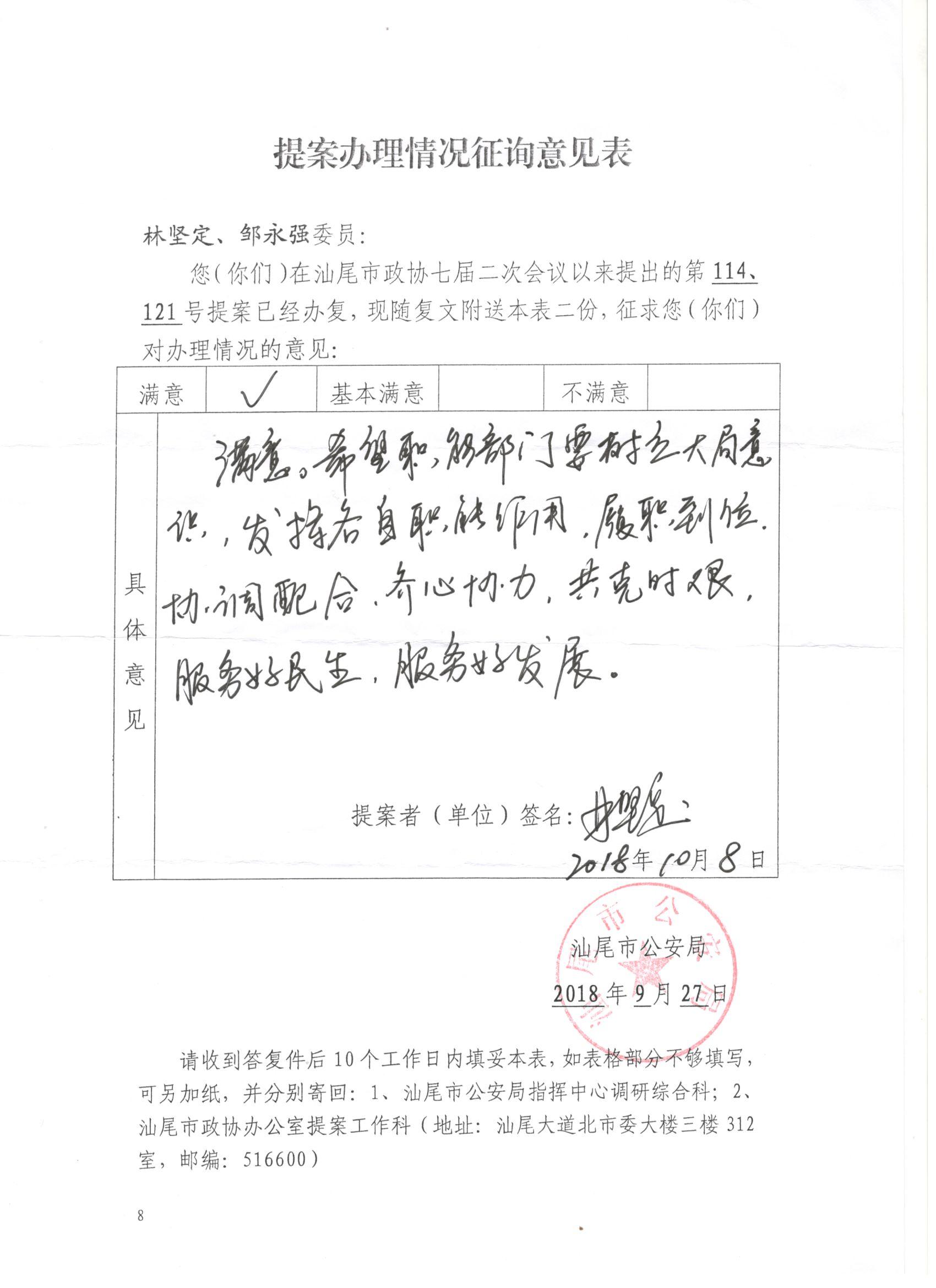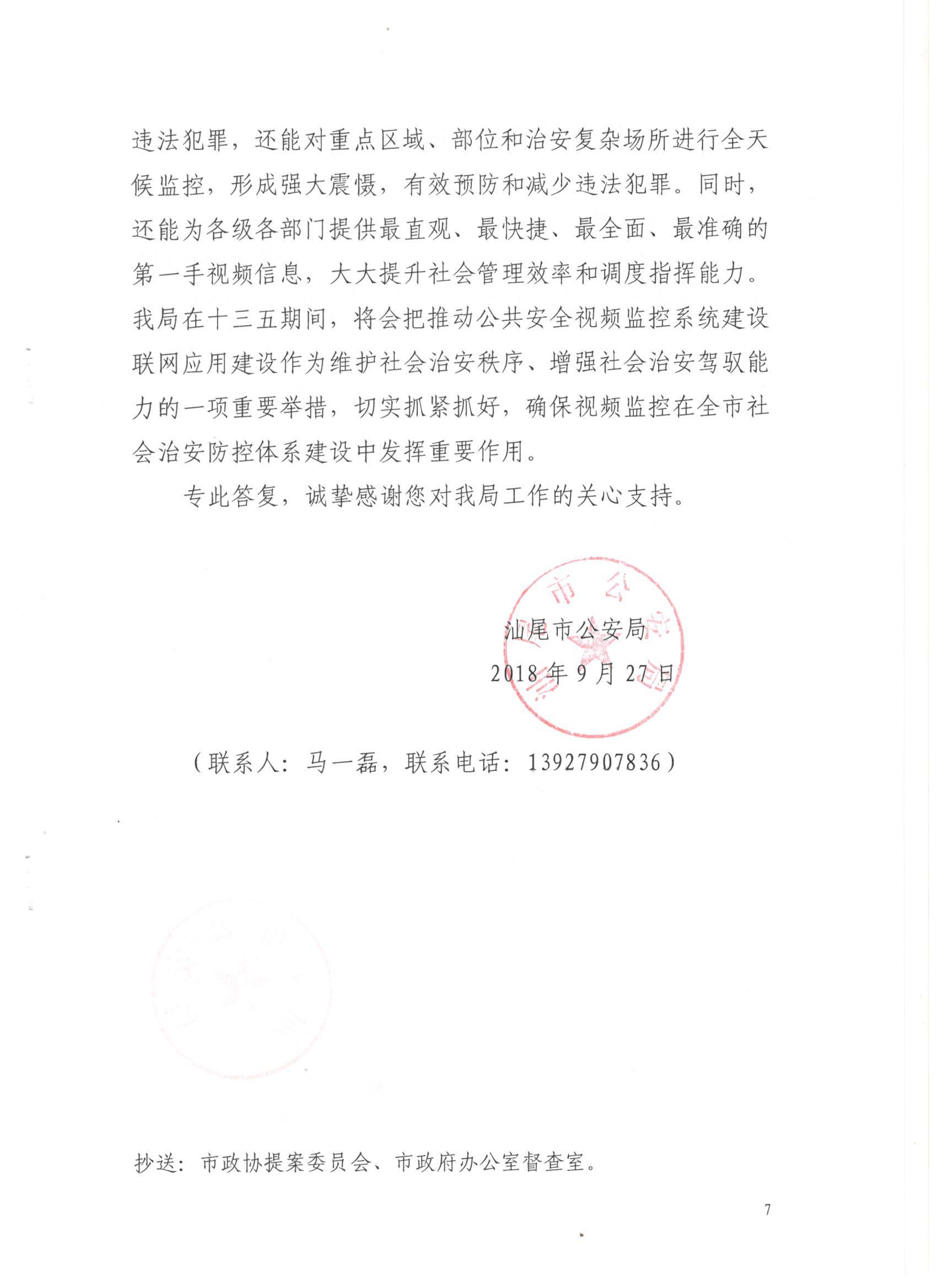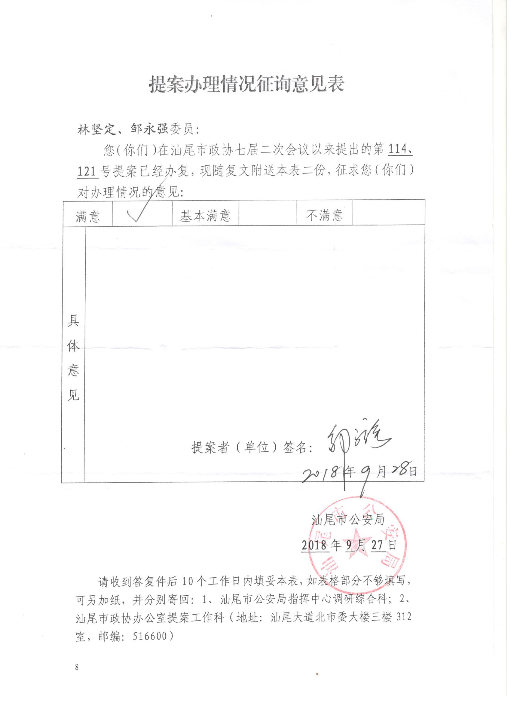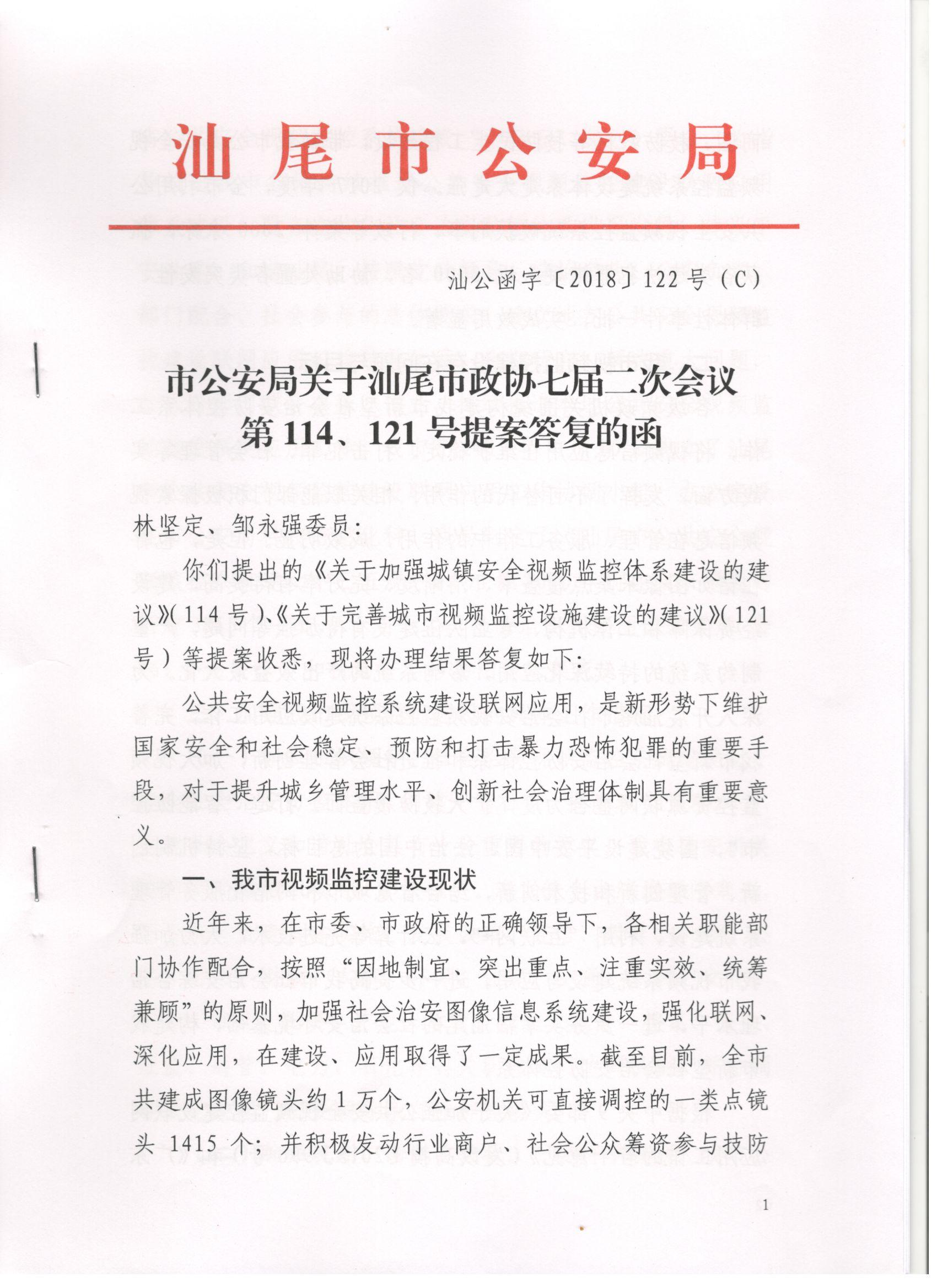 市公安局关于汕尾市政协七届二次会议第114、121号提案答复的函