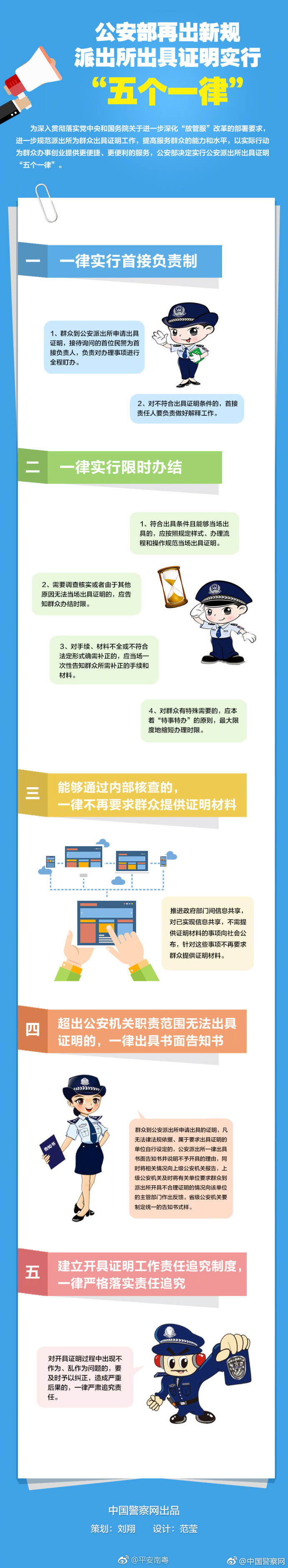 【图片解读】公安部出台《公安派出所出具证明“五个一律”工作规定》