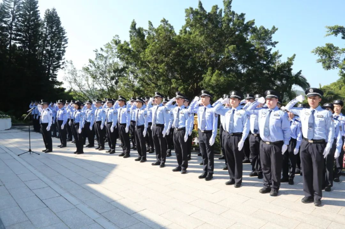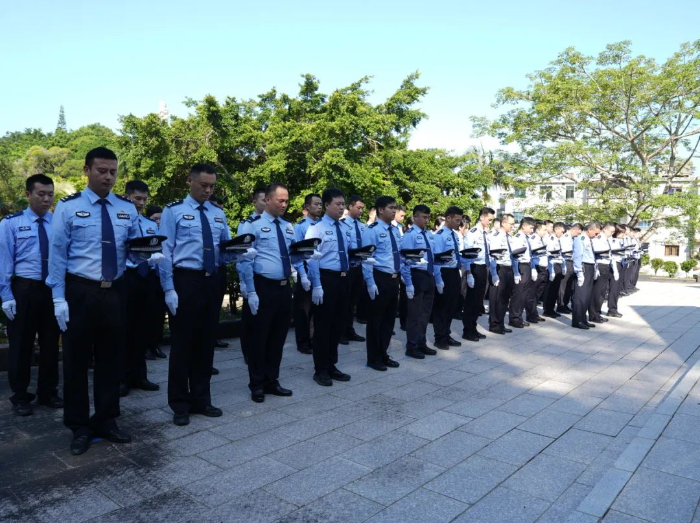 9月29日上午,在第十一个国家烈士纪念日来临之际,为深入学习贯彻习近平总书记关于弘扬英烈精神、传承红色基因的重要指示精神,贯彻落实全国、全省、全市公安工作会议精神,持续深化政治建设和忠诚教育,激励引导全市公安民警辅警进一步忠实履行好党和人民赋予的新时代使命任务,汕尾市公安局组织新招录民警、新发展党员等青年民警80人在城区鼎盖山烈士陵园举行2024年烈士纪念日缅怀活动。