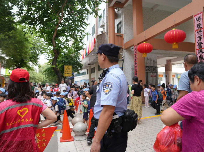 汕尾的清晨,秋日的凉风开始吹起,校园门口依旧车水马龙,来往学生、家长络绎不绝,民警们一边维护现场秩序,一边疏导车辆,倾力守护校园周边治安、交通秩序,以一抹抹藏青蓝撑起校园的“安全伞”。