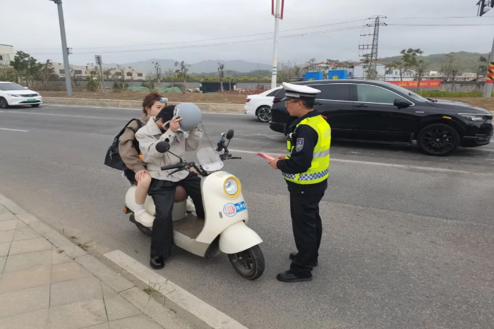 交管部门持续在重点路口开展电动自行车、摩托车交通违法教育劝导,同时派出女警小队走访社区沿街店铺、中小学校,以“面对面讲解、点对点提醒、发放宣传资料”等形式,向过往群众、商户、学生及骑乘人员重点宣讲无证驾驶、不佩戴安全头盔、超员载人、逆行、闯红灯等交通违法行为的危害性及法律后果,引导大家自觉遵守交通法规,牢固树立“早点走 靠右行 慢慢开”的出行理念,做到“有牌证 戴头盔 限两人”。