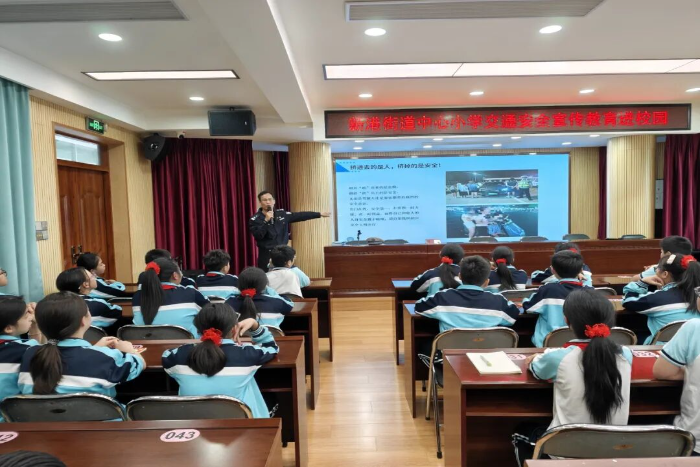 3月17日,汕尾市公安局交通管理支队的宣教民辅警走进城区新港中心小学开展交通安全宣传活动,与学生和教师进行面对面交流互动,将交通安全知识送到师生身边。
