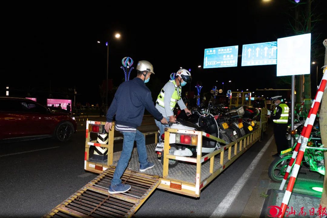 3月23日晚,汕尾市公安局交警支队市区一大队在辖区开展摩托车、电动车交通违法行为专项整治行动,重点对海滨大道驾乘摩托车、电动车不戴安全头盔,无牌无证、超员、逆向行驶和酒驾醉驾、泥头车“三超一疲劳”等交通违法行为进行整治。行动期间,共查扣了无牌无证、不戴安全头盔二轮摩托车、电动车65部,泥头车6部,小车酒驾2宗。