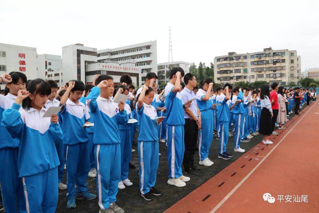 “我是中华民族的儿女,不忘耻辱,坚决与毒魔作斗争,珍爱生命,拒绝毒品……”一句句嘹亮的禁毒宣誓口号在新城中学广大的操场响起。522日上午,由汕尾市禁毒办、城区禁毒办主办,市教育局、城区教育局协办的“携手禁毒 护航青春”2019年汕尾市禁毒宣传进校园系列活动启动仪式在城区新城中学隆重举行,汕尾市禁毒办主任、市公安局副局长李小鹏,市教育局副调研员林小平,市禁毒办副主任黄木添,区委副书记、区政法委书记郑良斌,副区长、区公安分局局长叶伟健,区教育局局长陈小凯,区公安分局副局长卓汉胜等领导以及城区60所学校校长、新城中学2000多名学生和师生志愿者代表参加了启动仪式。