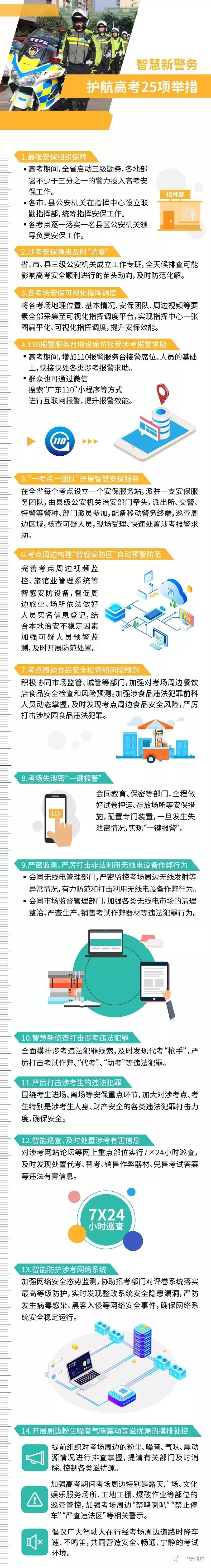 李世华要求,各地公安机关要全面强化涉考相关信息的搜集研判,做到预警在前、处置在先,有针对性做好防范处置工作。要对照省公安厅制定的“智慧新警务护航高考25项举措”,结合本地、本警种实际抓好贯彻落实,研究推出更多服务考生的暖心措施,最大限度为考生、家长提供最优质服务。要通过各类媒体平台,有针对性地加强护航高考的宣传工作,及时推送高考期间异常天气预报、自然灾害及道路交通情况,大力倡导、鼓励广大群众参“绿色出行”,发动社会广泛参与自主护考。