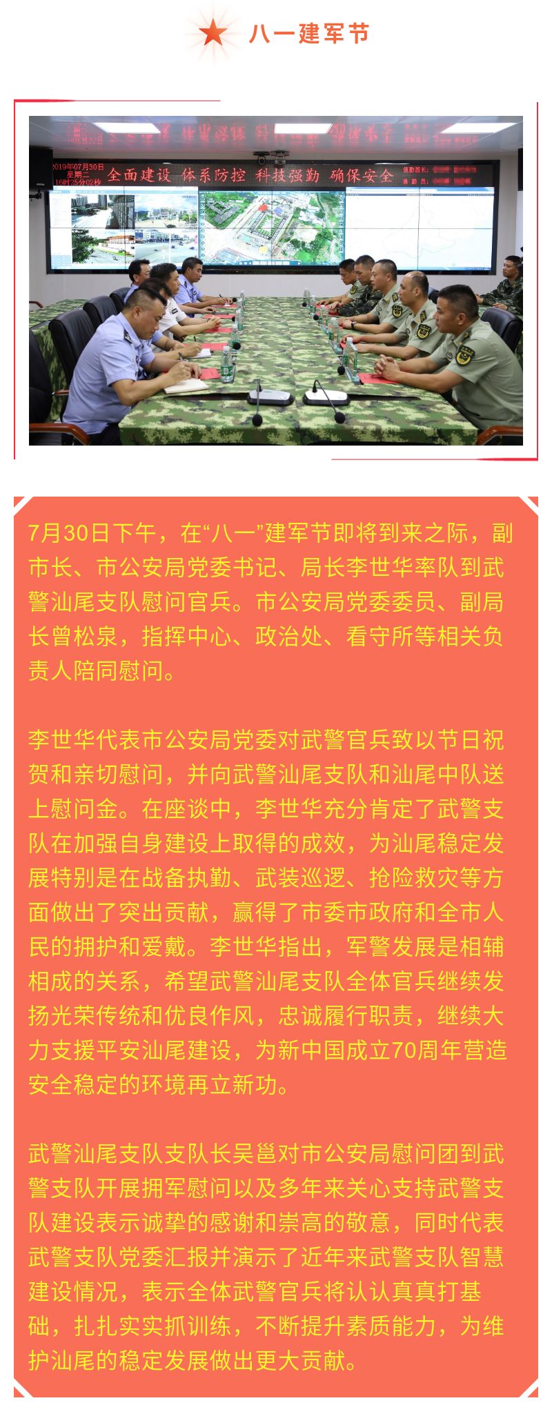 李世华率队慰问武警汕尾支队