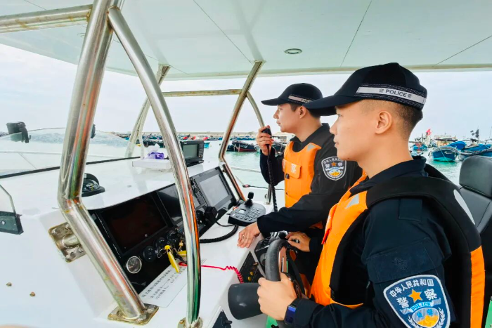 “我们的任务就是守护这片海,不能放过任何可能影响比赛的安全隐患。”刚结束一轮巡航带队的民警马剑锋说道。海风夹带着湿气和盐分,长时间暴露在这样的环境中,他们的皮肤变得粗糙,警服上已经结着一层白色的盐渍。