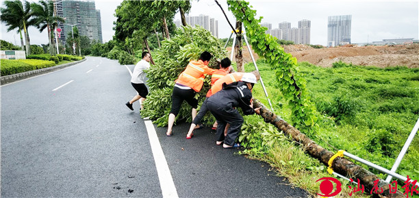 “韦帕”造隐患,交警排路障