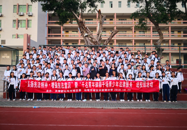 为落实党的十九大精神,做好宪法学习宣传教育和贯彻实施活动,再掀宪法宣传教育新高潮,我委于10月23日在汕尾市城区田家炳中学举办“弘扬宪法精神·增强宪法意识”暨“千名青年律师千场青少年法律服务”进校园活动,并邀请了蔡伟伟律师为同学们现身说法。