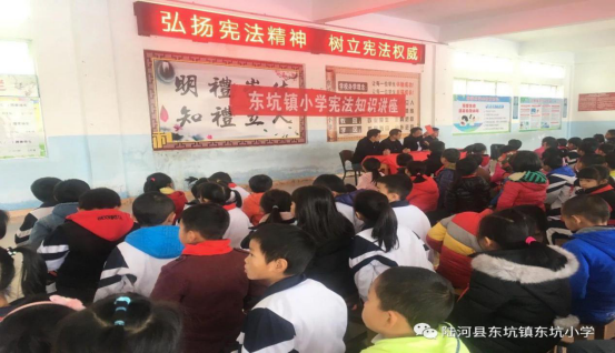 彭武汉所长为东坑小学师生进行了宪法有关知识的宣讲,阐明了宪法是我国的根本法,尊崇宪法、学习宪法、维护宪法、遵守宪法和运用宪法是我们的共同责任。他精彩的讲座博得全场阵阵掌声。