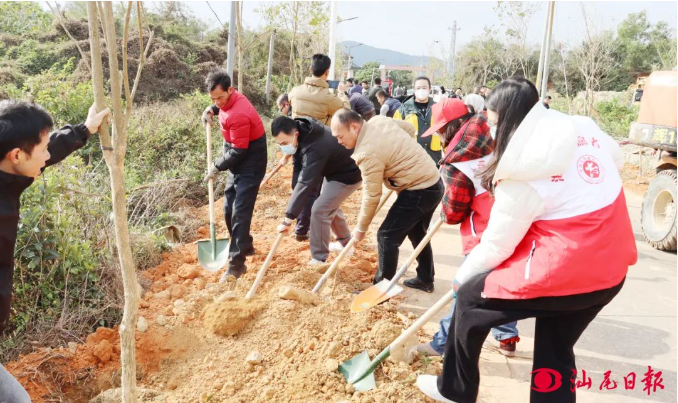 为认真贯彻落实省委“1310”具体部署和市委、县委实施“百千万工程”“明珠一号”工作部署,1月24日,海丰县陶河镇召开绿美陶河“大干一场”党员干部带头捐资植树活动部署会议。陶河镇党委书记李伟锋在会上号召全镇党员干部职工积极参与绿美陶河建设行动,并广泛发动乡贤共同发力,为建设绿美陶河贡献自己一份力量。会后,该镇党政班子成员带领党员干部和群众120余人前往陶新村入村主干道两侧开展植树活动。户外寒风凛冽,但依然阻挡不了党员干部植树热情,大家动手挖土植树,热火朝天的氛围,使周边群众也受到了感染,纷纷撸起袖子参与其中。