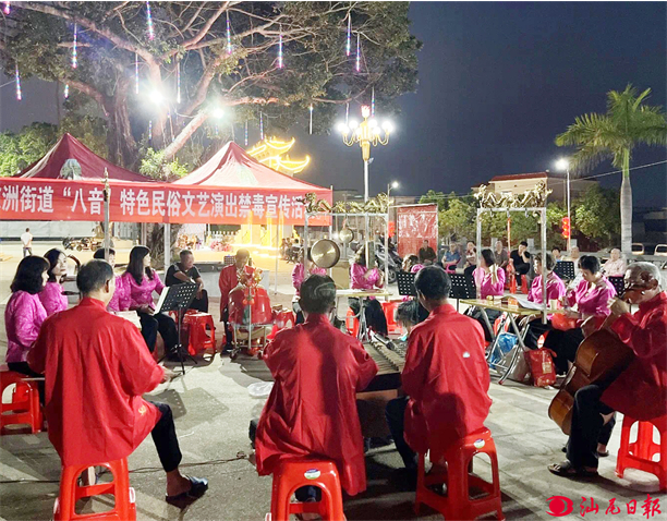活动邀请了东洲“八音”乐队,采用扬琴、中胡、秦琴、笛子、二弦、三弦、椰胡、二胡8种乐器组合演奏合唱的方式演绎《禁毒之歌》。现场,八音配乐与白字戏曲腔调相得益彰,把《禁毒之歌》演绎得悦耳动听、韵味十足,台下观众情不自禁融入其中,产生共鸣。歌词深刻揭露了吸毒害人、害己、害社会,呼吁大家远离毒品,同心禁毒,拥抱健康人生。在演出过程中,工作人员还用本地方言,配合仿真毒品模型,为广大群众讲述涉毒的真实案例。 活动现场工作人员身穿“粤虎”玩偶服与青少年亲切互动,青少年与憨厚可爱的“粤虎”愉快玩耍,争相合影留念。禁毒工作人员还向群众派发禁毒宣传手册,科普毒品知识,现场进行有奖问答,大家争相抢答,赢取印有“同创禁毒示范城市 共享绿色无毒人生”字样的钥匙扣等小礼品,现场氛围轻松愉快。活动共派发禁毒宣传手册及礼品300余份。