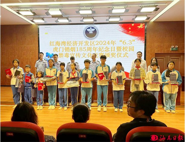 汕尾日报讯 (记者 林敏 通讯员 黄小斯 文/图)近日,红海湾禁毒办联合区教育与卫生健康局在白沙中学举行“2024年‘ 6·3’虎门销烟185周年纪念日暨校园禁毒宣传文化竞赛颁奖仪式”。