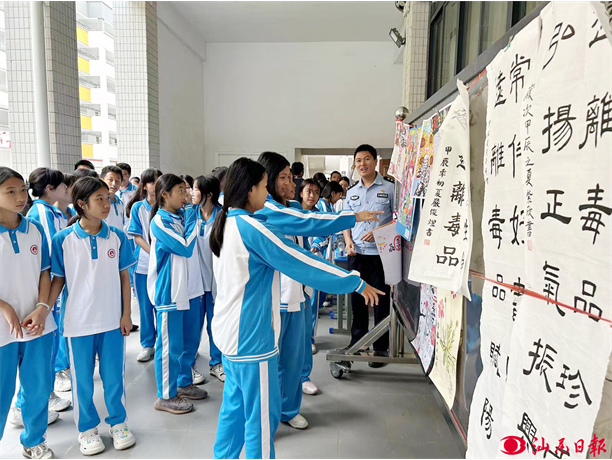 颁奖仪式后,主办方组织开展师生参观毒品仿真样品、与禁毒“粤虎”互动、禁毒知识问答和派发禁毒宣传单等活动,以寓教于乐的宣传形式,让青少年更深入地了解禁毒知识和毒品的危害,提高自我保护意识,增强对毒品的警惕性,引导青少年树立正确的价值观和人生观,进一步提升青少年识毒防毒拒毒意识,大力弘扬虎门销烟精神,助力汕尾创建全国禁毒示范城市工作。