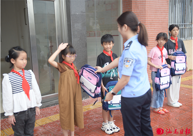 陆丰法院进雨亭小学开展禁毒宣传,为学生送禁毒定制书包及文具。