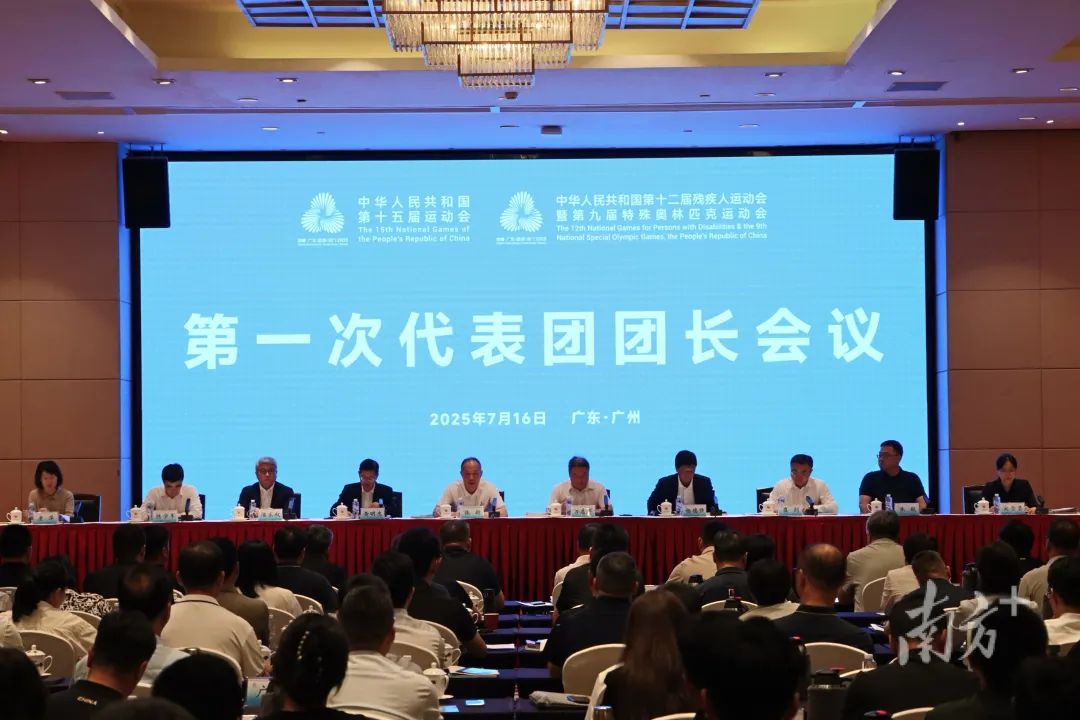 7月16日上午,第十五届全国运动会和全国第十二届残疾人运动会暨第九届特殊奥林匹克运动会第一次代表团团长会议在广州召开。国家体育总局竞体司司长张新、竞体司副司长康萍、群体司副司长朱毅、外联司副司长宋雪莹、中国残联体育部副主任勇志军出席会议并讲话。会议由十五运会和残特奥会组委会副秘书长、广东省政府副秘书长黄明忠主持。