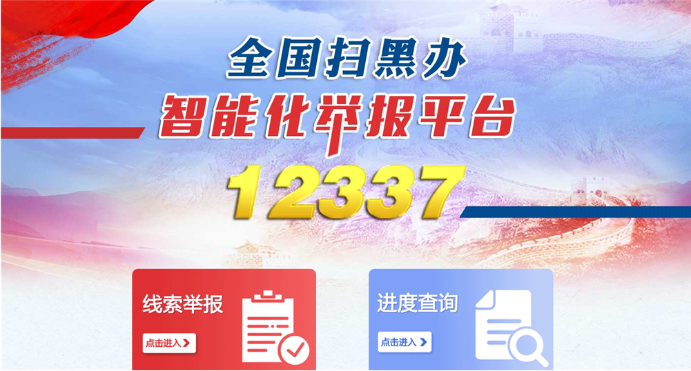 全国扫黑办于5月28日在互联网上线全国扫黑办智能化举报平台(www.12337.gov.cn),该平台由全国扫黑办对外统一受理全国范围内群众举报的涉黑涉恶线索,欢迎广大人民群众踊跃举报。