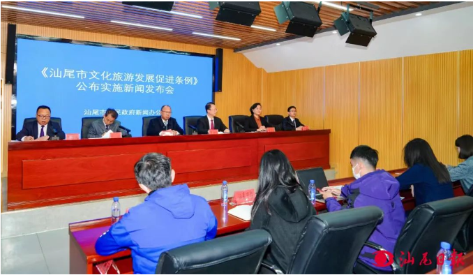 12月24日,我市召开《汕尾市文化旅游发展促进条例》(以下简称《条例》)公布实施新闻发布会。市人大常委会法工委、市文化广电旅游体育局、市市场监督管理局、市交通运输局和市商务局相关负责人介绍有关情况及贯彻实施条例的计划安排并答记者问。