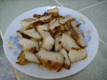 材料:猪颈肉半磅,蒜头一只拍碎,,生抽,酒各一茶匙,老抽,盐各半茶匙 做法:将所有材料加入猪颈肉腌三小时, 干水,慢火煎至两面黄色,切片上碟