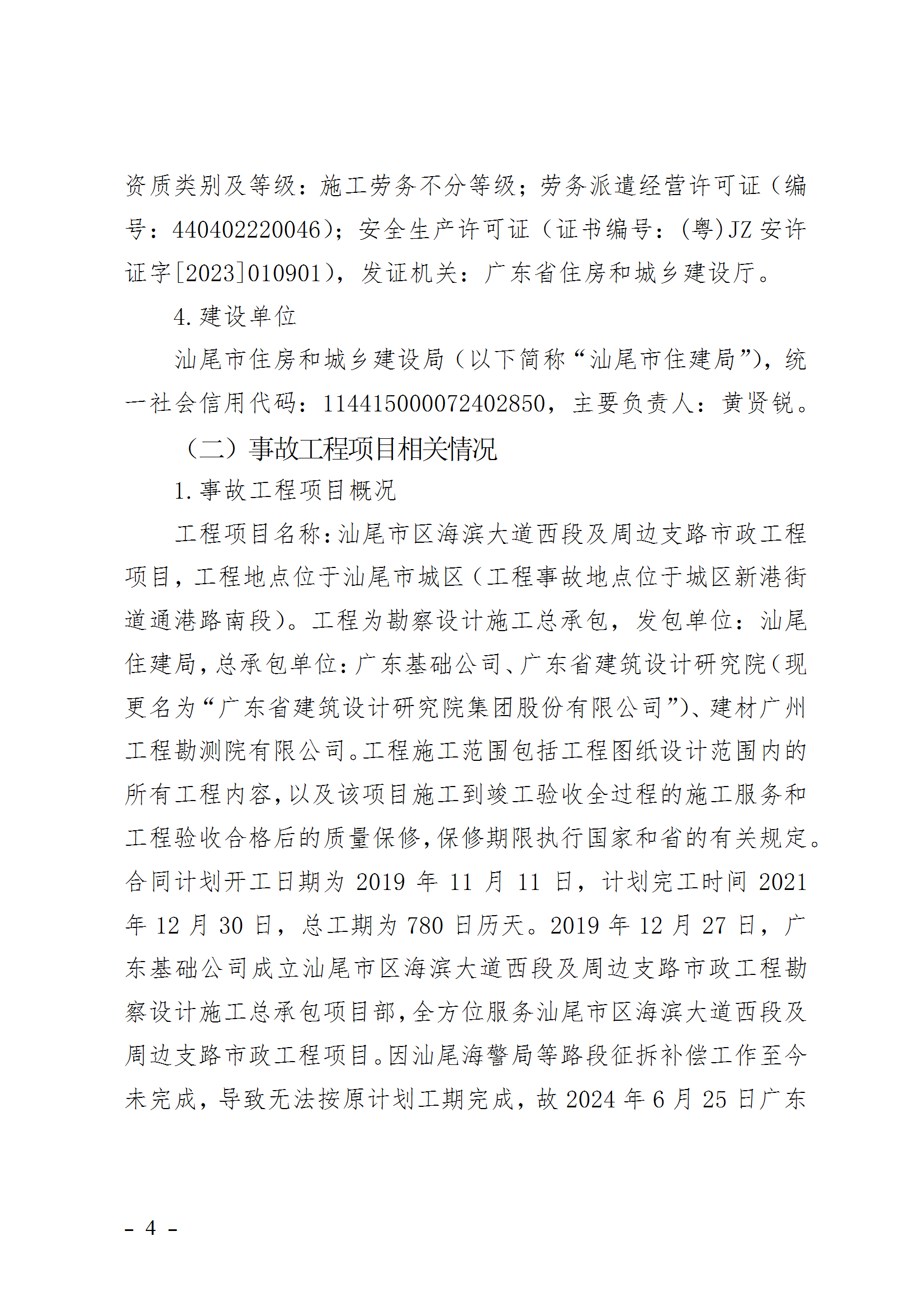 市城区海滨大道西段及周边支路市政工程项目“12·9”一般事故调查报告