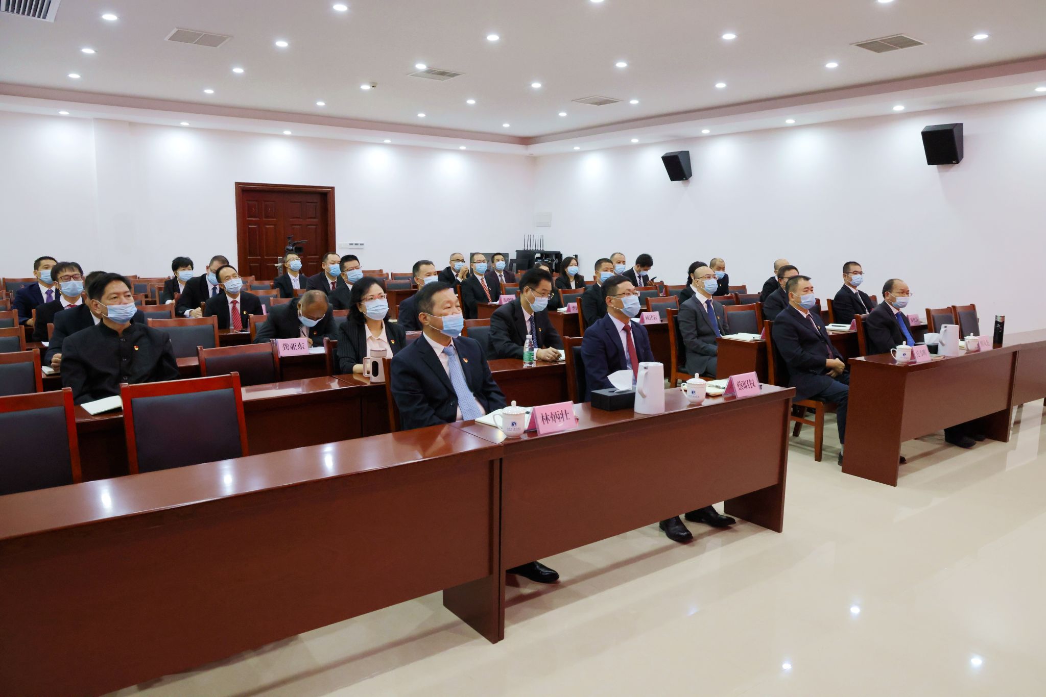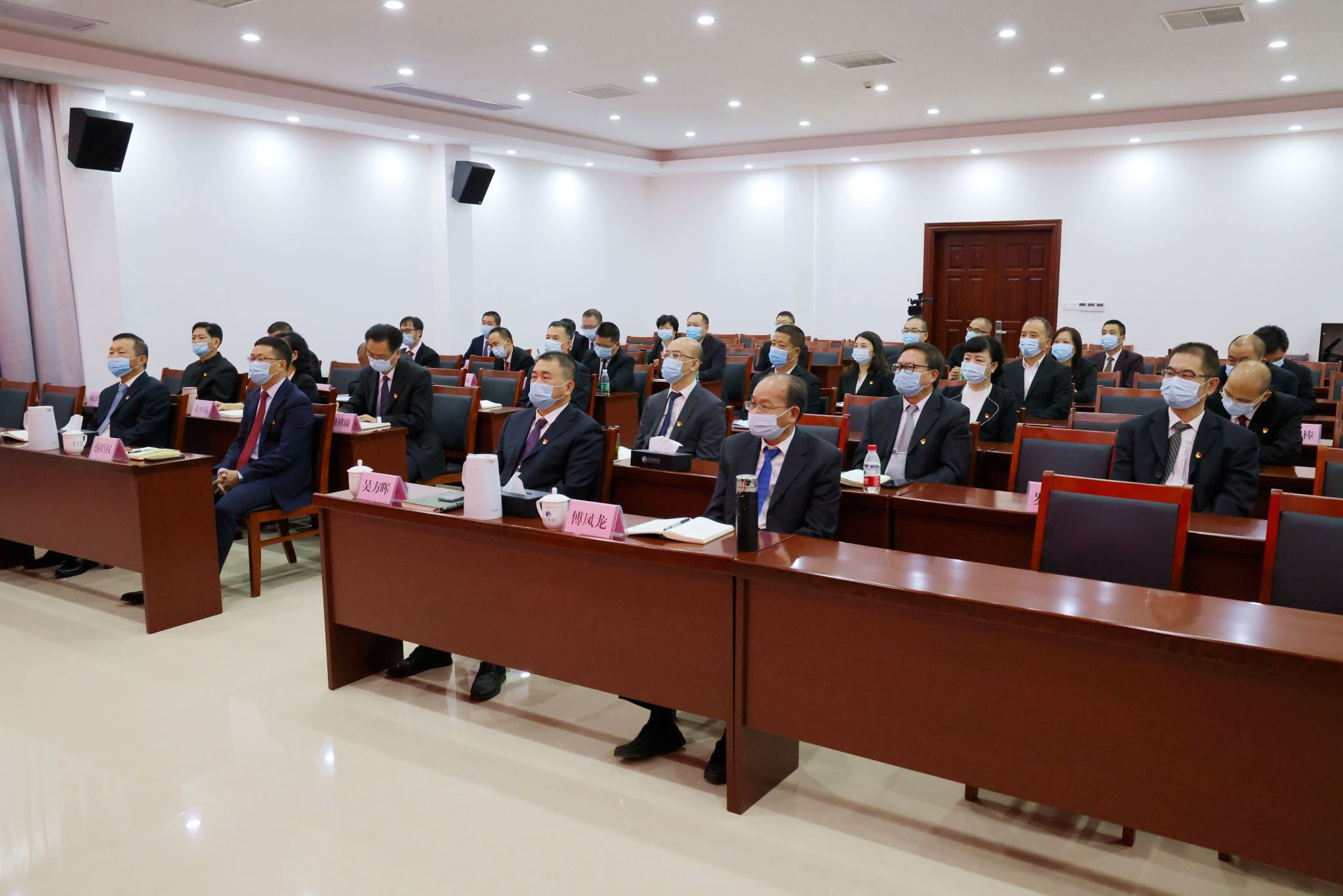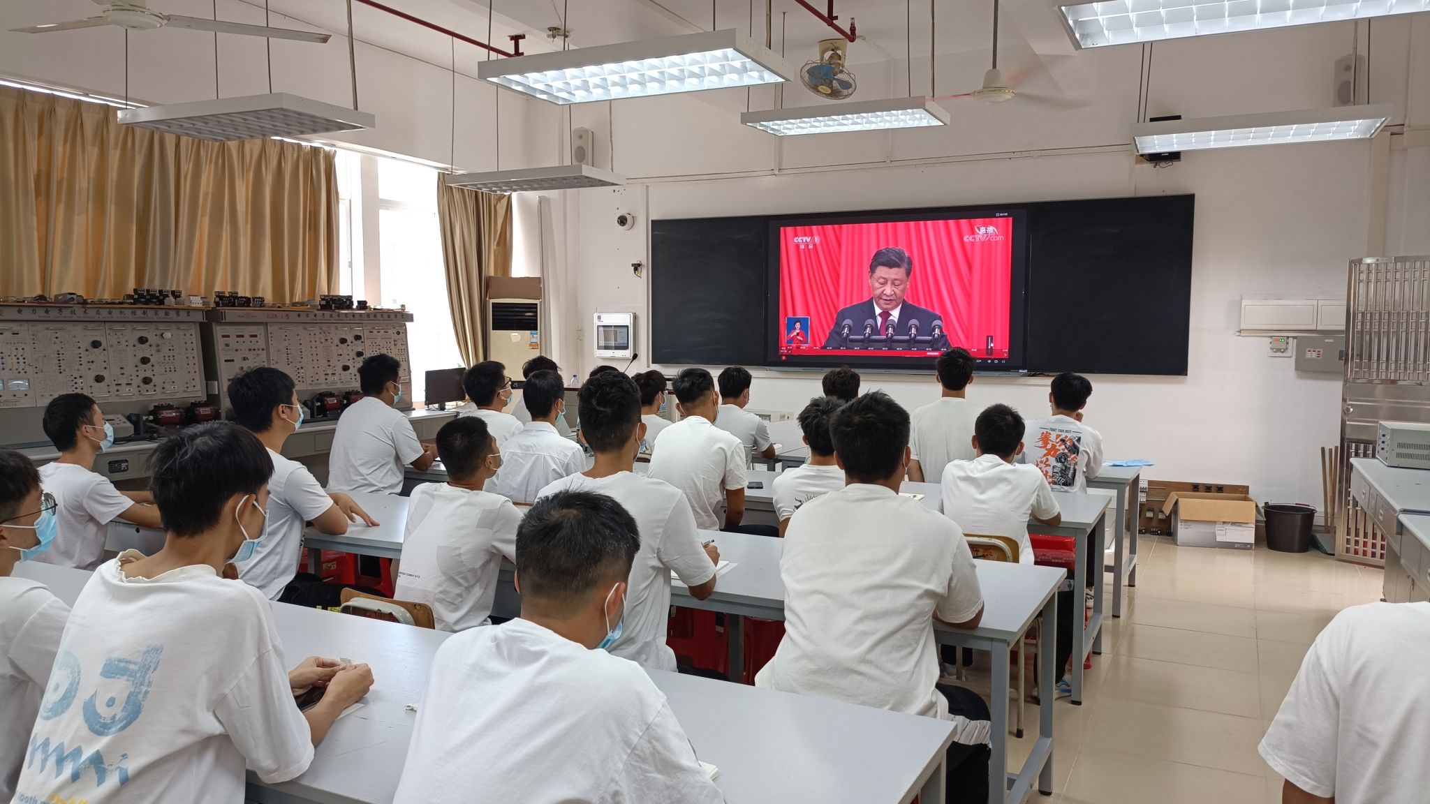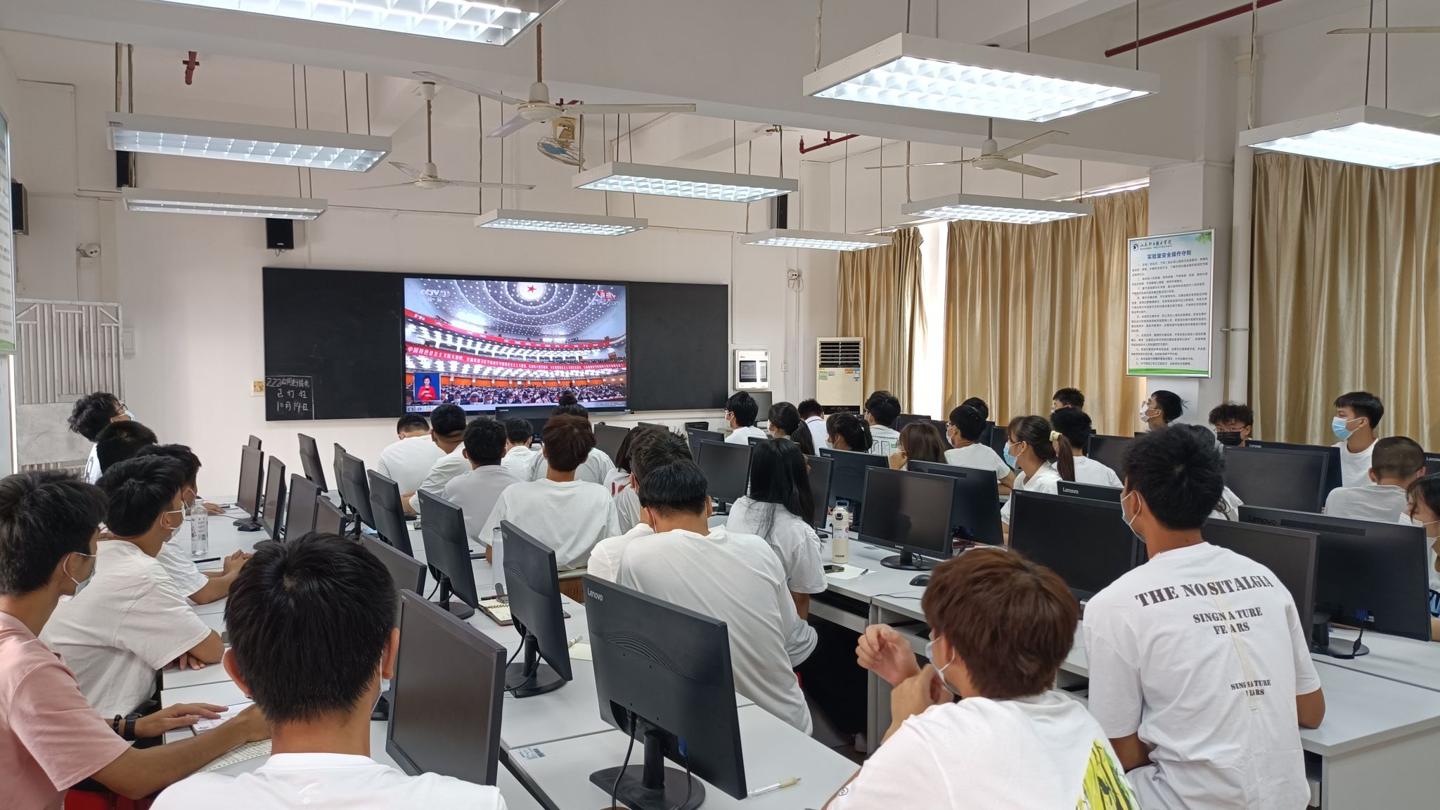 学校各单位组织师生在会议室、办公室、课室,集中收听收看大会直播。