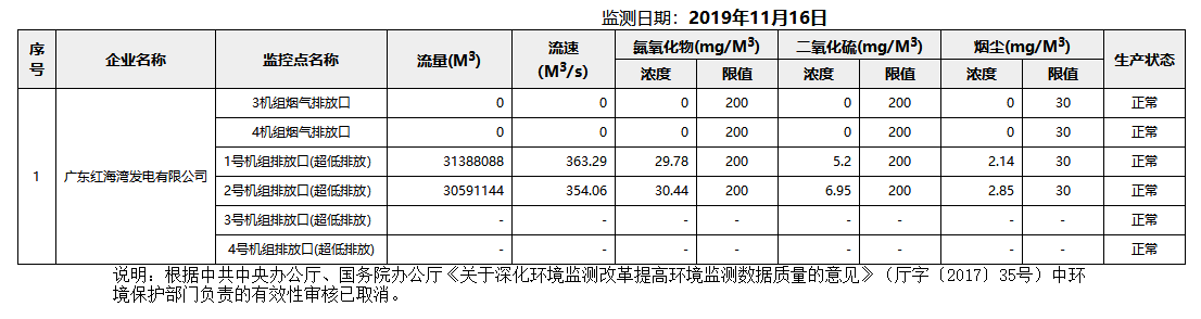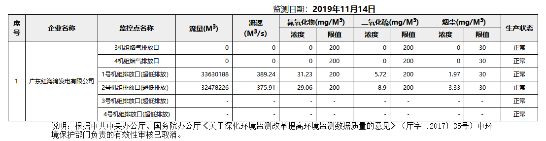 2019年11月11-17日汕尾市国控重点污染源废气企业自动监控数据报表