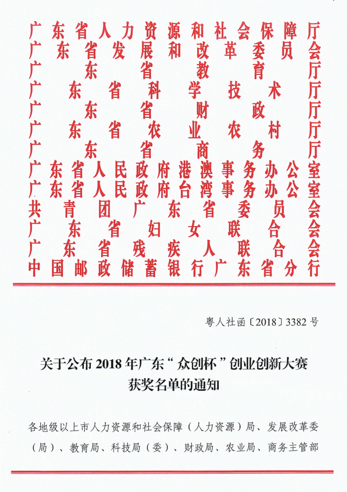关于公布2018年广东“众创杯”创业创新大赛获奖名单的通知