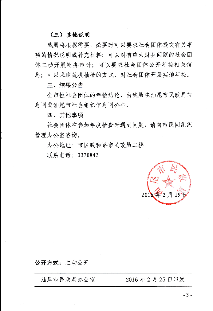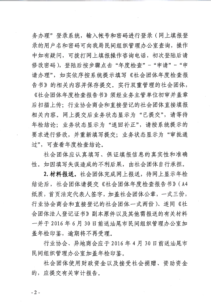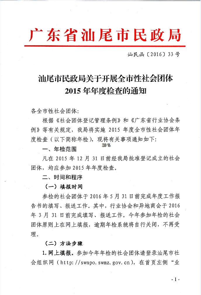汕尾市民政局关于开展全市性社会团体2015年年度检查的通知