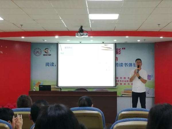 4月21日上午,“阅读,只为遇见更好的自己——我的读书体验”主题讲座正式开讲。主讲人洪一辉老师,樊登读书会汕尾分会执行副会长,城区首届“感动城区年度教师提名奖”获得者,中国伦理学会会员,聚阅书吧联合创办人。
