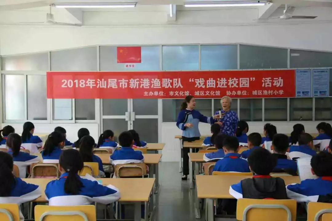 12月21日,由市文化馆、城区文化馆联合主办的2018年汕尾市新港渔歌队“非遗进校园”活动走进新港渔村小学。本次活动邀请了国家级非物质文化遗产(汕尾渔歌)传承人徐圆目老师进行授课。