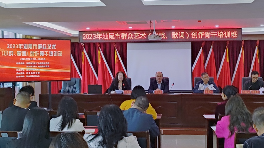 大雪时至,闻岁末花香,蕴养春美好。为深入学习贯彻习近平文化思想和社会主义文艺工作的重要讲话精神,提升我市文化馆(站)业务骨干及业余文艺创作者的业务能力和创作水平,12月7日至9日,由汕尾市文化广电旅游体育局、海丰县文化广电旅游体育局指导,汕尾市文化馆主办,海丰县文化馆承办的“2023年汕尾市群众艺术(小戏、歌词)创作骨干培训班”在海丰县文化馆成功举办,汕尾市文广旅体局艺术(非遗)科科长李向钦、海丰县文广旅体局副局长王锦平、汕尾市文化馆副研究馆员马薇姗出席开班仪式。全市各级文化馆(站)50名业务骨干及60名业余文艺创作者参加培训。