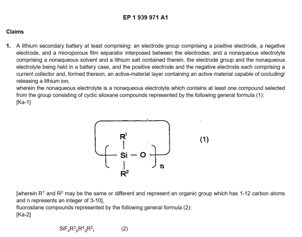 2021年11月,MUIS在德国杜塞多夫地方法院对对欧宝汽车和宁德时代提起专利侵权诉讼(案件编号4c O 53/21),指控特定型号欧宝汽车上搭载的宁德时代生产的锂电池侵犯了其欧洲专利(公开号:EP1939971A1,以下简称“971’号专利”)。根据诉讼文书,被控侵权产品的电极化学结构为核心侵权技术特征。MUIS要求法院颁布禁令救济、公开被告信息及账户以及销毁现有侵权产品。随后,欧宝汽车和宁德时代分别在德国联邦专利法院对EP1939971号欧洲专利提起无效。