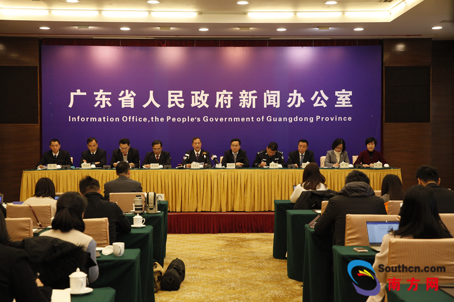 南方网讯 2月6日下午,广东省人民政府新闻办公室召开2018年广东省春运保障和节日安全工作新闻发布会,向社会各界发布省委、省政府关于做好我省春运和节日安全工作的部署安排,对春运服务保障和节日安全相关工作举措进行介绍。省政府副秘书长张爱军、省交通厅副厅长王富民、省公安厅交管局局长申勇强、省住建厅副厅长刘玮、省气象局副局长常越、省旅游局副局长曾晓峰、南航集团党组副书记张子芳、广铁集团公司副总经理郭吉安、广东电网公司副总经理钟连宏出席发布会。