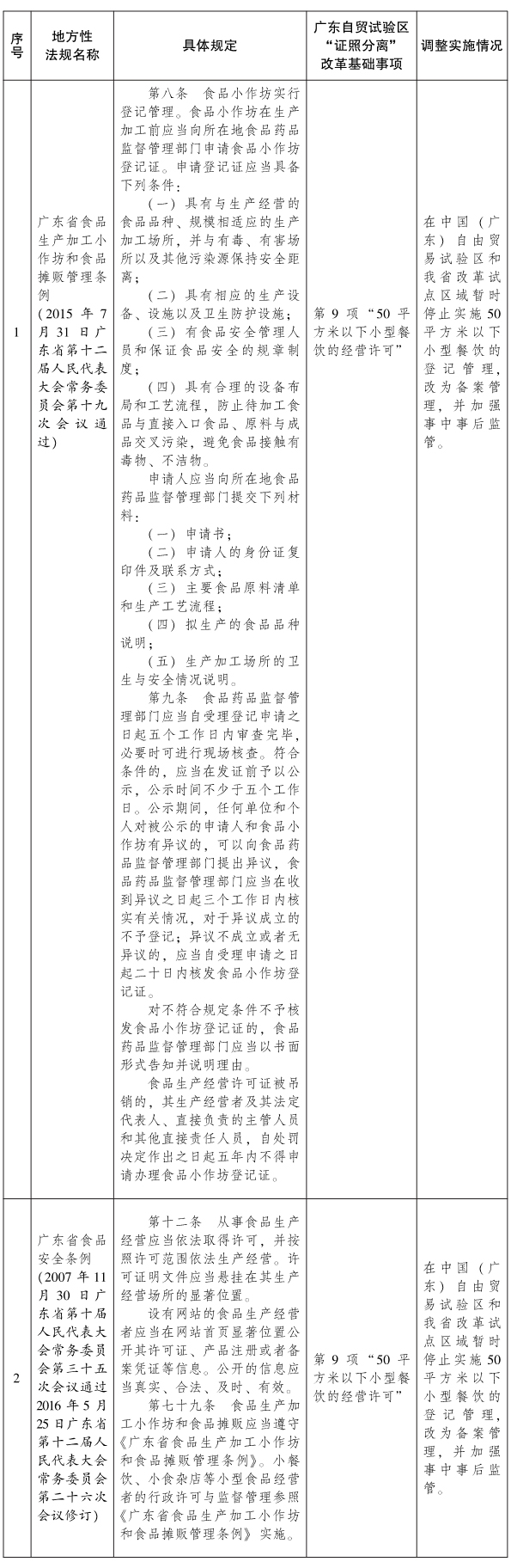 为了保障我省自由贸易试验区等区域依法推进“证照分离”改革,根据《广东省人民代表大会常务委员会关于在中国(广东)自由贸易试验区和复制推广“证照分离”改革试点具体做法的区域调整实施本省有关地方性法规规定的决定》,现将在中国(广东)自由贸易试验区和“证照分离”改革试点区域调整实施的本省有关地方性法规规定予以公布。