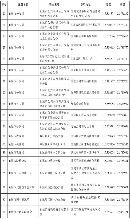 附件:汕尾市公共建筑与设施免费开放支持信息设施建设目录(第二批)
