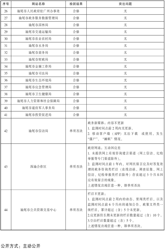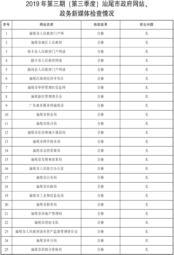 附件:2019年第三期(第三季度)汕尾市政府网站、政务新媒体检查情况