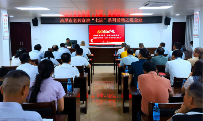 老兵宣讲进企业,砥砺奋进新征程。7月1日,中共汕尾市委退役军人事务工作领导小组办公室联合中国人寿汕尾分公司、人寿财险汕尾分公司、广发银行汕尾分行开展汕尾市老兵宣讲“七进”系列之“进企业”活动。汕尾市退役军人事务局党组成员、副局长吴志华出席活动并致辞。