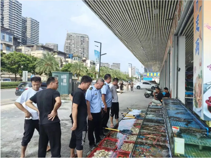 近日,市市场监督管理局依法对市区保利金町湾景区两家沿街餐饮大排档责令停业整顿。
