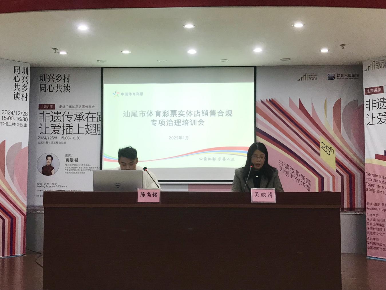 为进一步加强体育彩票销售合规管理,严厉打击实体店利用互联网销售彩票、吃票、销售私彩等违法违规行为,切实维护我市体育彩票市场秩序,1月3日至5日,汕尾体彩中心分区域召开体彩销售实体店代销者开展销售合规专项治理工作培训会。