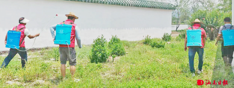 城区党员干部入户协助群众清理庭院积水,并进行四害消杀。