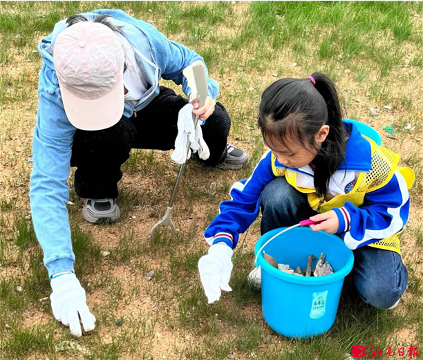 活动以“爱绿护绿小卫士出击”为主题,工作人员结合“12355”青少年服务功能普及安全自护与草坪保护等知识,科普清理小石块对维护草坪生态的重要性。随后,现场20组亲子家庭分工协作,大家戴上手套、手持夹子,家长耐心指导孩子分辨石块与自然植被,认真捡拾散落在草坪上的小石块,在协作中传递环保理念,深化青少年对生态保护的认知。