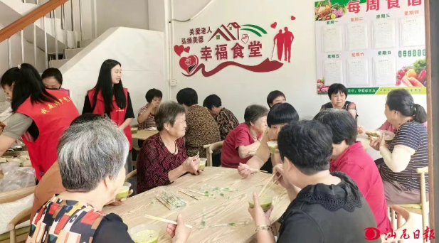 新兴社区的老人们在幸福食堂里品油茶话家常。