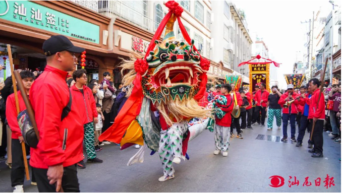 龙舞、麒麟舞、英歌舞、汕尾渔歌、钱鼓舞、正字戏、白字戏、西秦戏、河田高景……春节假期,一系列非遗民俗文化观赏体验活动,既营造了热闹喜庆的氛围,也丰富了群众的假期生活,多角度、全方位展现优秀传统文化,有效激活了旅游消费市场。多彩民俗活动,让前来“赶海”的游客兴奋不已,大家跟着热闹的巡游队伍走起来,大街小巷锣鼓喧天,人头攒动,入眼皆是喜庆的红色……