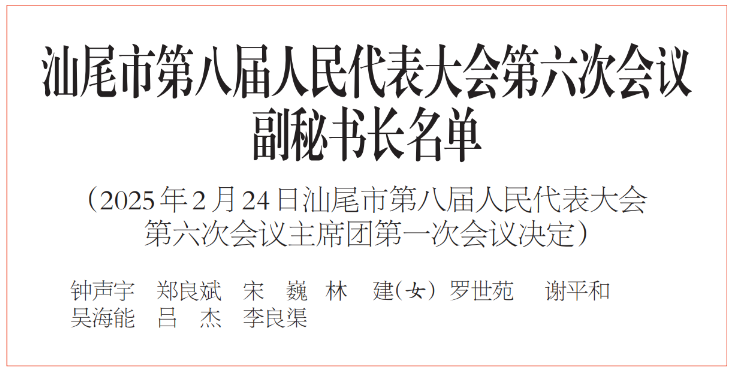 汕尾市第八届人民代表大会第六次会议 副秘书长名单