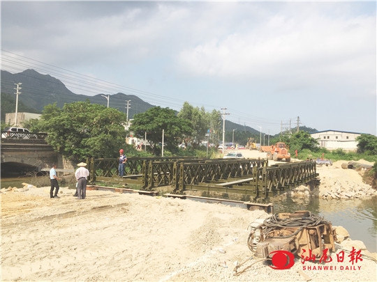 汕尾日报讯 (记者 梁佳 通讯员 叶仲秋)7月20日下午,市公路局应急架桥队顶着烈日,在国道228线(原国道324线)崔陂桥下游位置完成了2座18米双排单层加强型的321钢桥架设任务,届时通车可保证双车道双向通行。