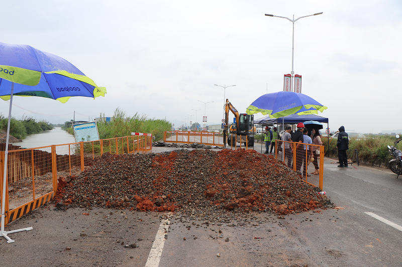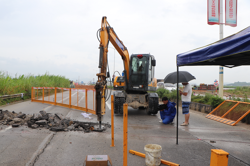 8月24日,市代建项目事务中心在海汕路项目施工中发现梧围路段陶河排洪渠涵洞发生沉陷,为确保交通安全,我中心迅速封闭右幅道路(海丰往汕尾方向),组织专业技术人员到现场进行勘察,制定抢修方案。现场没有发生事故。