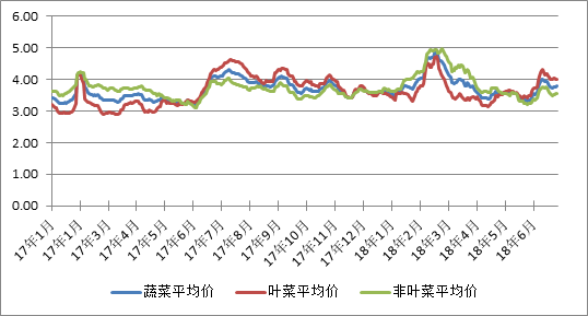 蔬菜价格明显上涨。受1月寒冷天气影响及春节需求拉动,1、2月份蔬菜价格波动明显,并呈较大幅度上涨,3、4月份虽有一定幅度回落,但6月份持续的降雨天气又推动菜价上升,造成上半年蔬菜价格累计涨幅明显。由于去年蔬菜价格总体下降,且去年上半年保持低位运行,因此,今年上半年同比涨幅比较明显,纳入监测的30个蔬菜品种平均零售价同比上涨11.8%,其中叶菜、非叶菜分别上涨13.2%、8%。