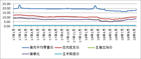 二是受生猪养殖周期影响,今年5月底以来,国内生猪市场出场价持续上升,特别是8月份河南、东北等地生猪产区因非洲猪瘟禁止生猪外调,造成供应偏紧,推动猪价进一步上升,目前生猪上游价格仍维持高位,仍有进一步上升空间,但升幅或会趋缓,预计4季度猪肉价格将呈稳中有升走势。