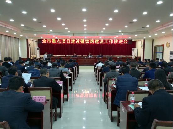 3月8日,市政府召开全市重点项目建设暨铁路建设工作推进会,市直有关单位负责同志;各县(市、区)政府分管领导,发展改革局局长,铁路办主任;重点建设项目业主单位负责同志参加了会议。会议通报了2018年我市重点项目建设和铁路建设进展情况,部署2019年重点项目工作任务。
