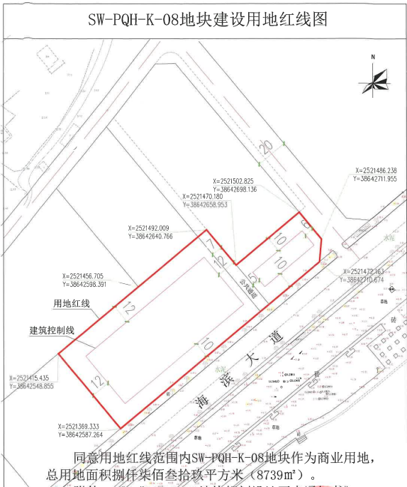 汕尾市顺利房地产开发有限公司通过公开招拍挂取得位于市区海滨大道西北侧一宗面积8739㎡商业用地的土地使用权,现拟核发该用地的建设用地规划许可证。依照《广东省城乡规划条例》第二十九条的有关规定,对相关事项公示如下: